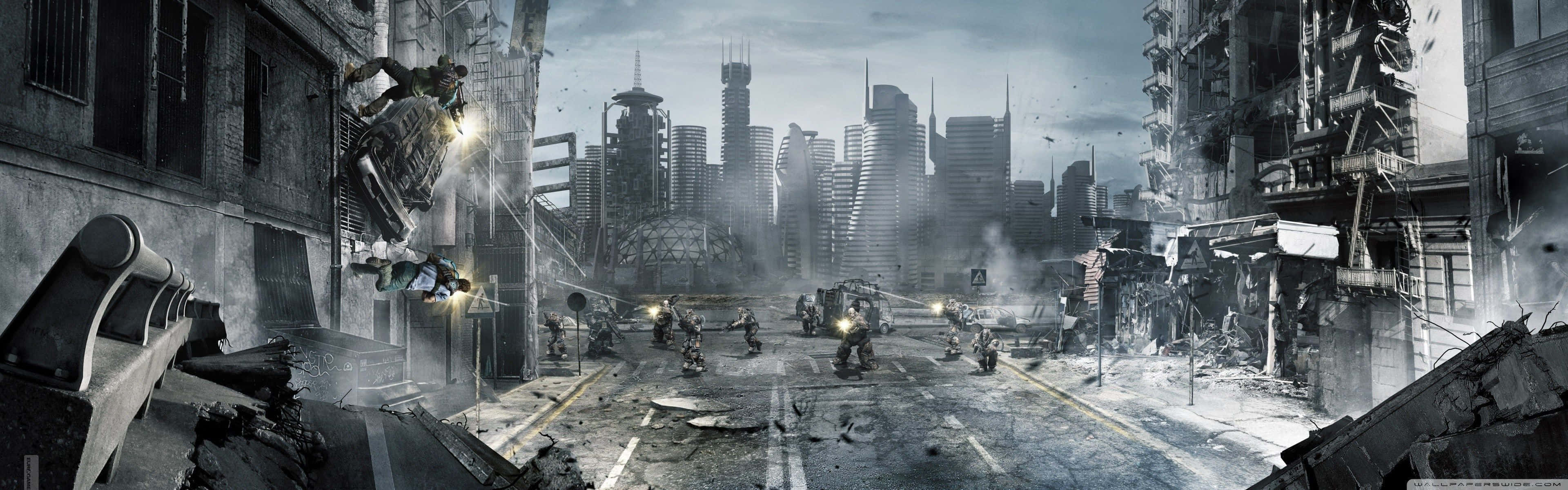 A Techie’s Dream: 4 Monitor Set Up Wallpaper