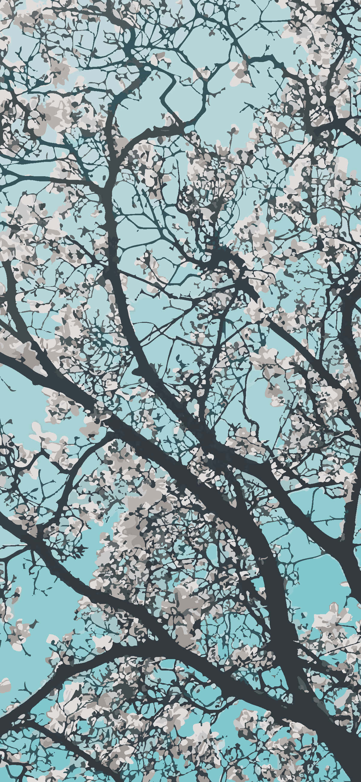 A Tree With Branches In Blue And White Wallpaper