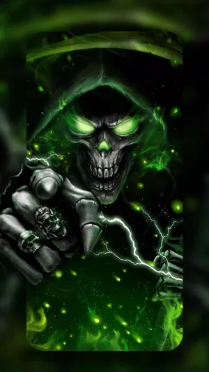 “a Vibrant Green Fire Skull” Wallpaper