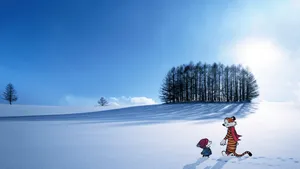A Watercolor Painting Of A Tiger And A Boy In The Woods Wallpaper