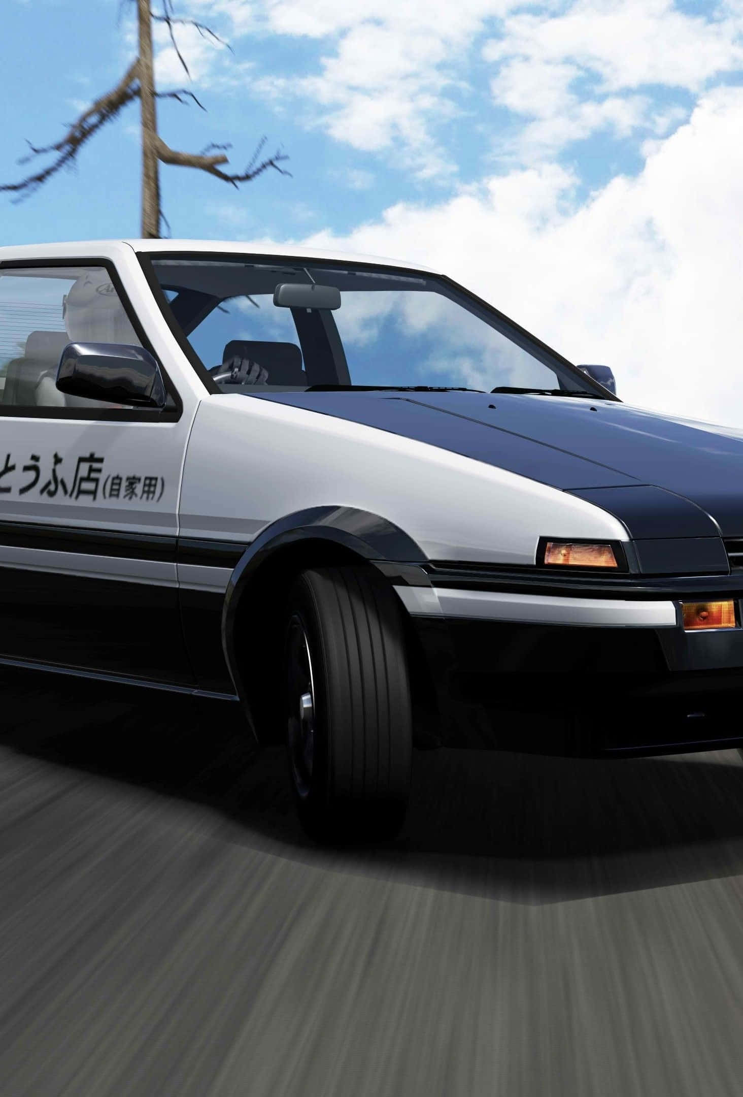 A White And Black Car Driving Down A Road Wallpaper