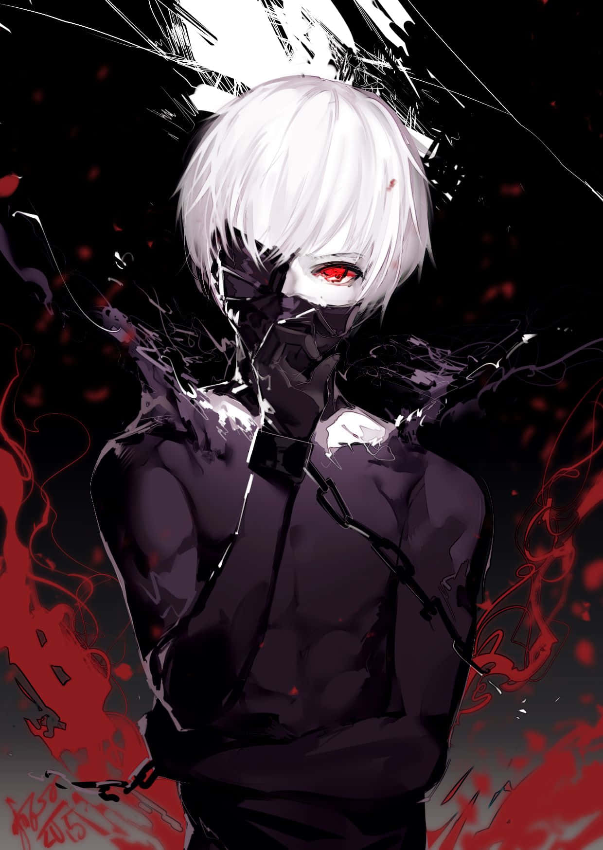 A White Anime Character With Blood On His Face Wallpaper