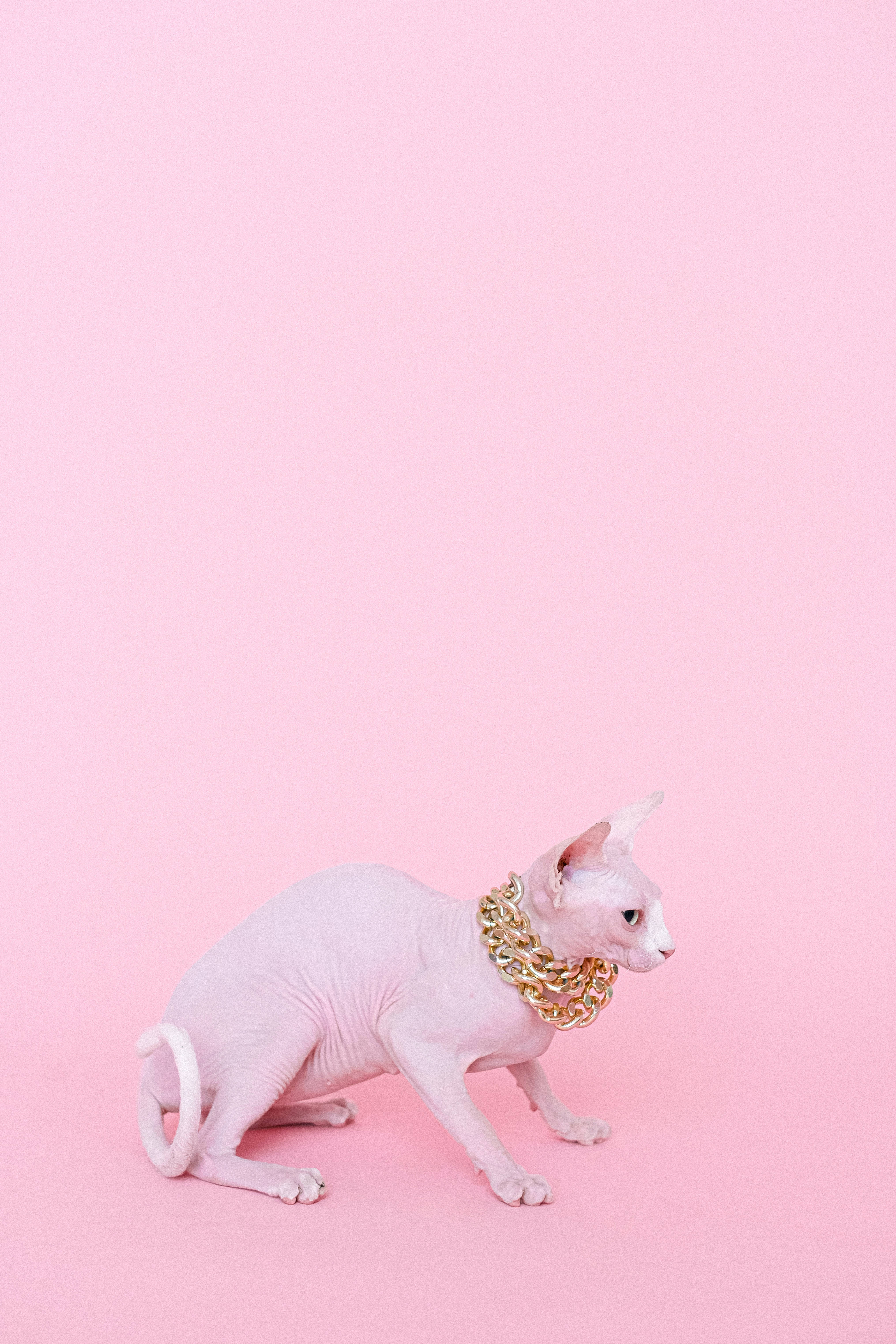 A White Cat With A Gold Chain On Its Neck Wallpaper