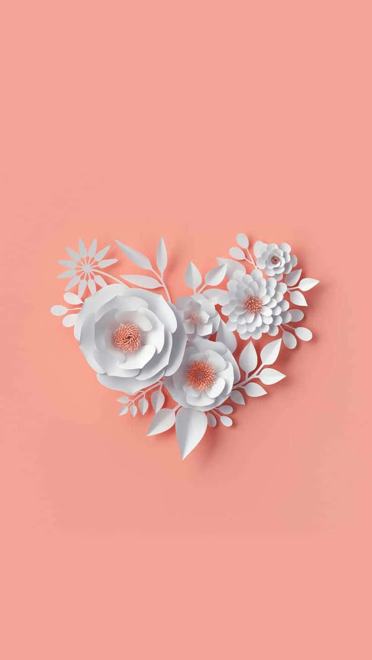 A White Paper Heart With Flowers On A Pink Background Wallpaper