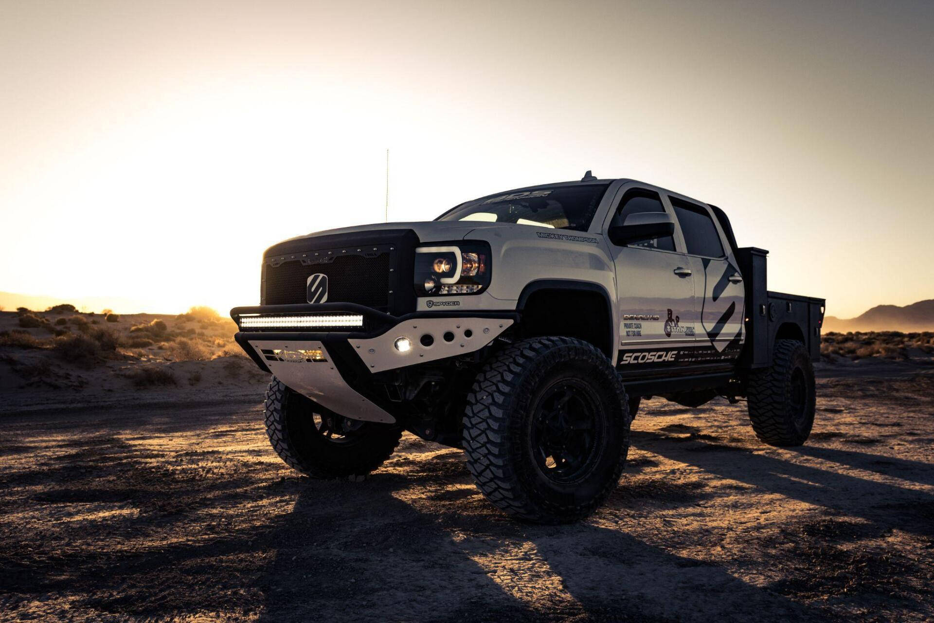 A White Truck Is Parked In The Desert Wallpaper