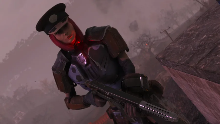 A Woman In A Red Outfit Holding A Gun Wallpaper