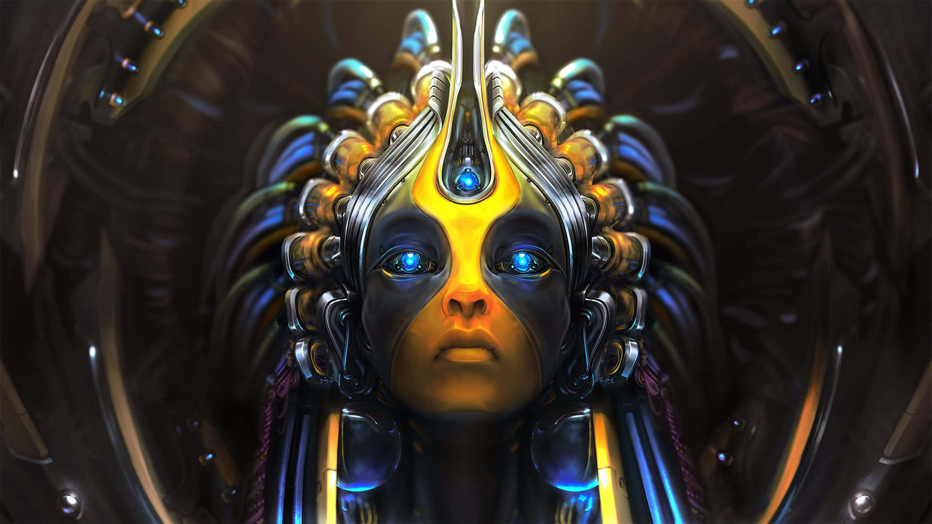 A Woman With A Futuristic Head Wallpaper