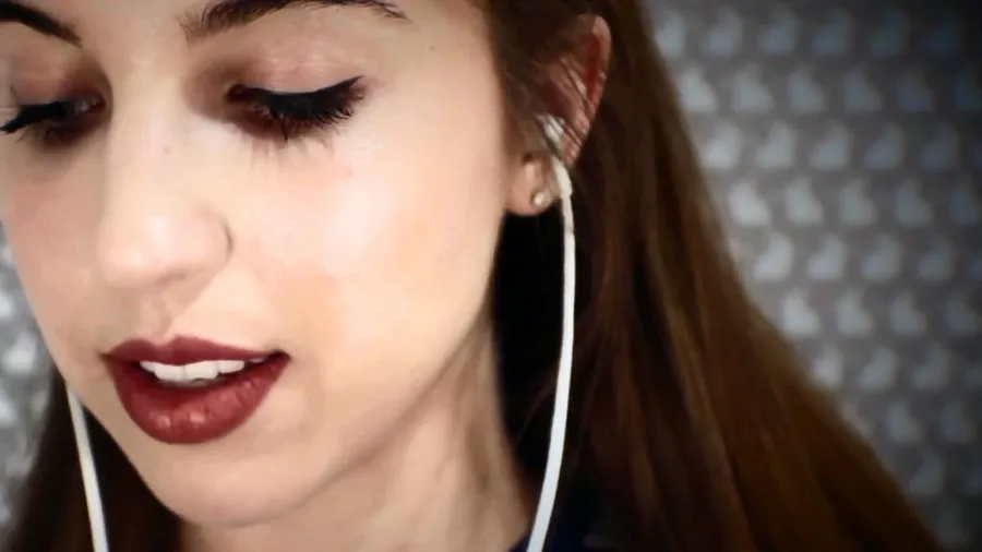 A Woman With Earphones Is Listening To Music Wallpaper