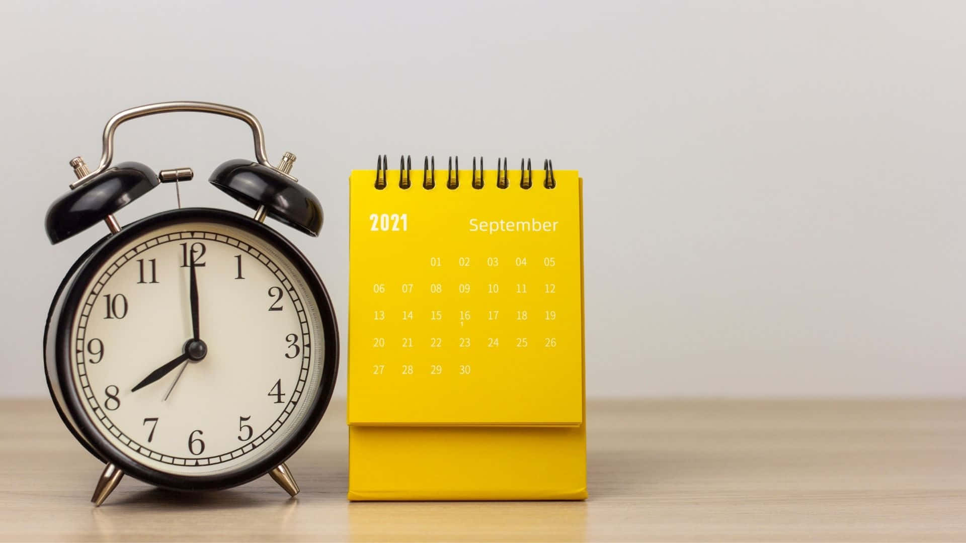 A Yellow Alarm Clock Next To A Calendar Wallpaper