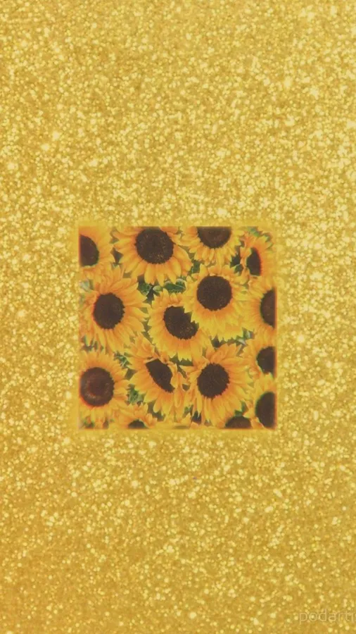A Yellow Glittery Background With Sunflowers On It Wallpaper
