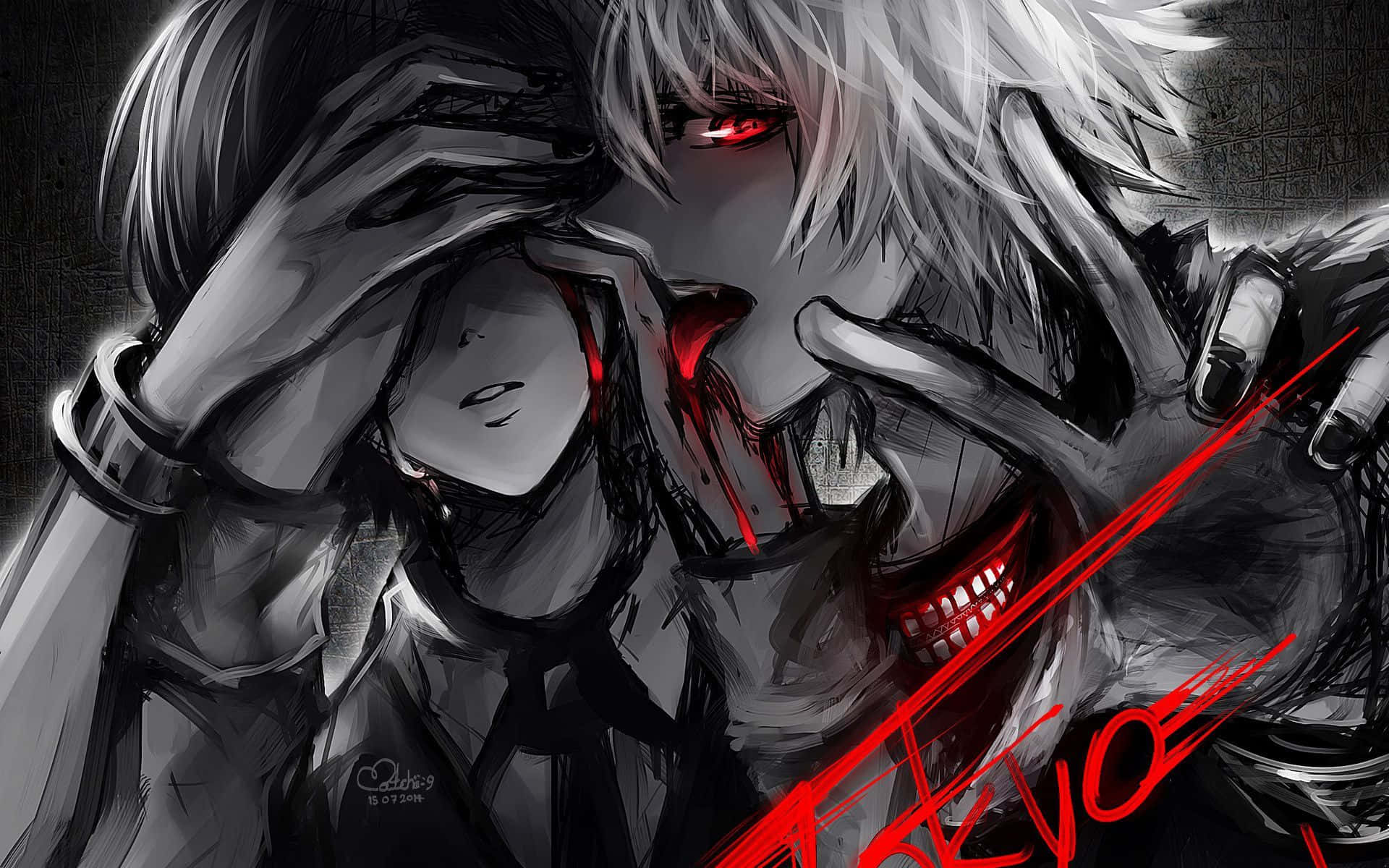 A Young Boy With An Eerie Yet Sorrowful Expression Stares Out Of A Horror Anime Landscape. Wallpaper