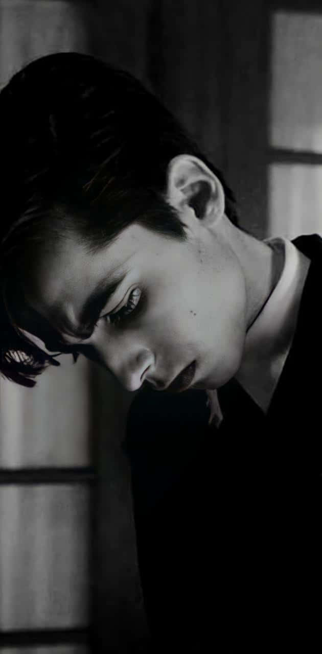 A Young Man In A Suit Is Looking At His Phone Wallpaper