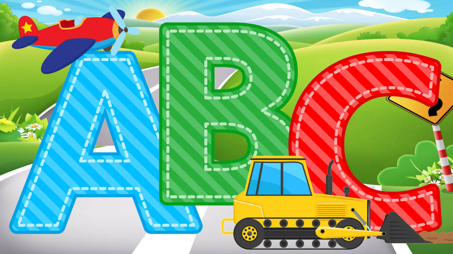 Abc Letters With Plane And Backhoe Wallpaper