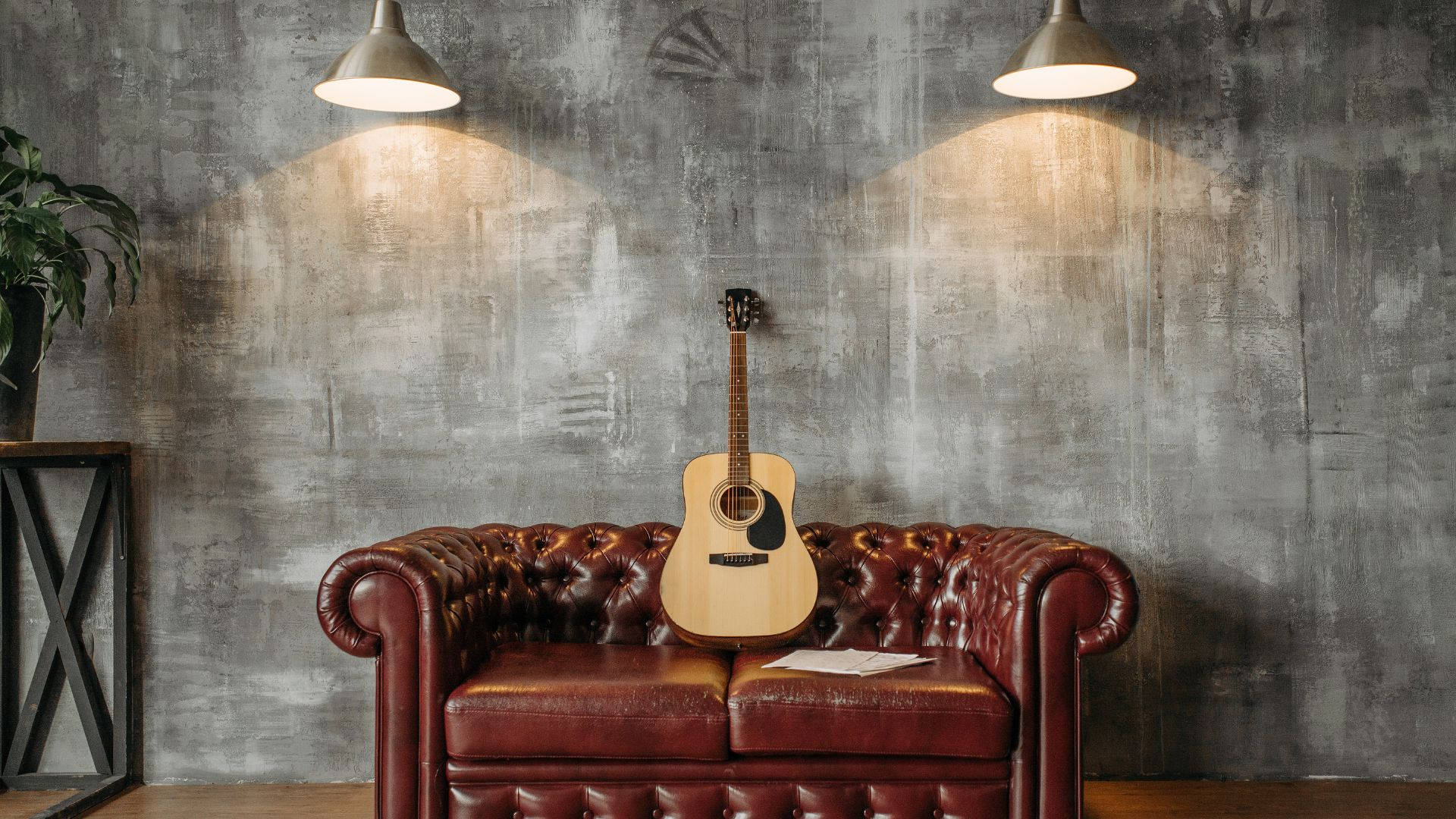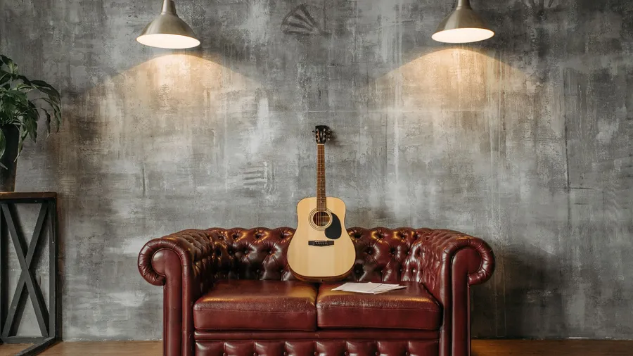 Acoustic Guitar Red Sofa Wallpaper