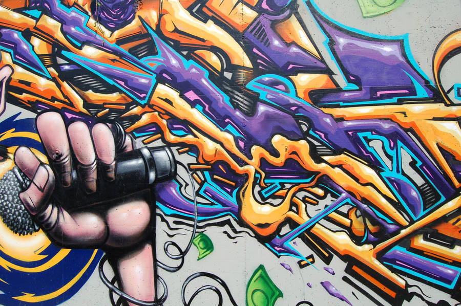 Adding The Finishing Touches To A Vibrant Music-inspired Graffiti Mural. Wallpaper
