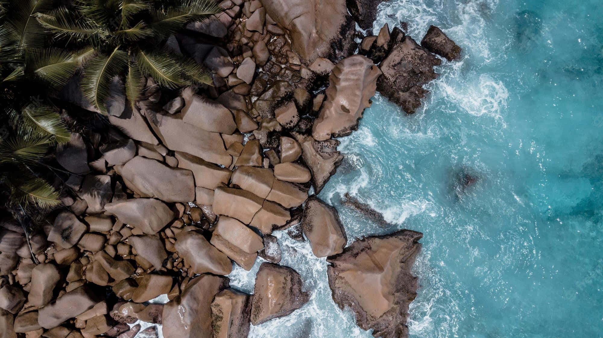 Aerial Rocks Beach Formations Waves Wallpaper