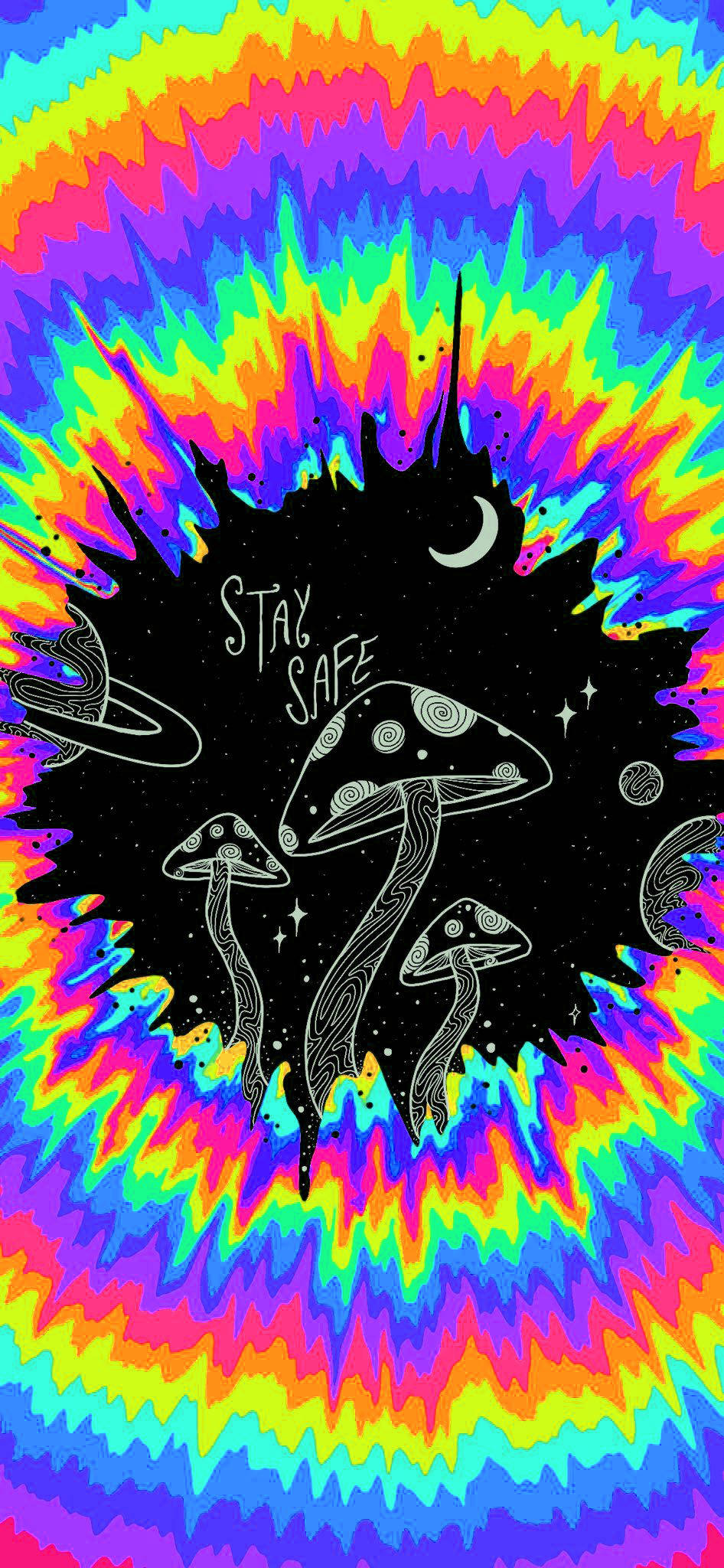 Aesthetic Trippy Black And White Mushrooms Rainbow Wallpaper