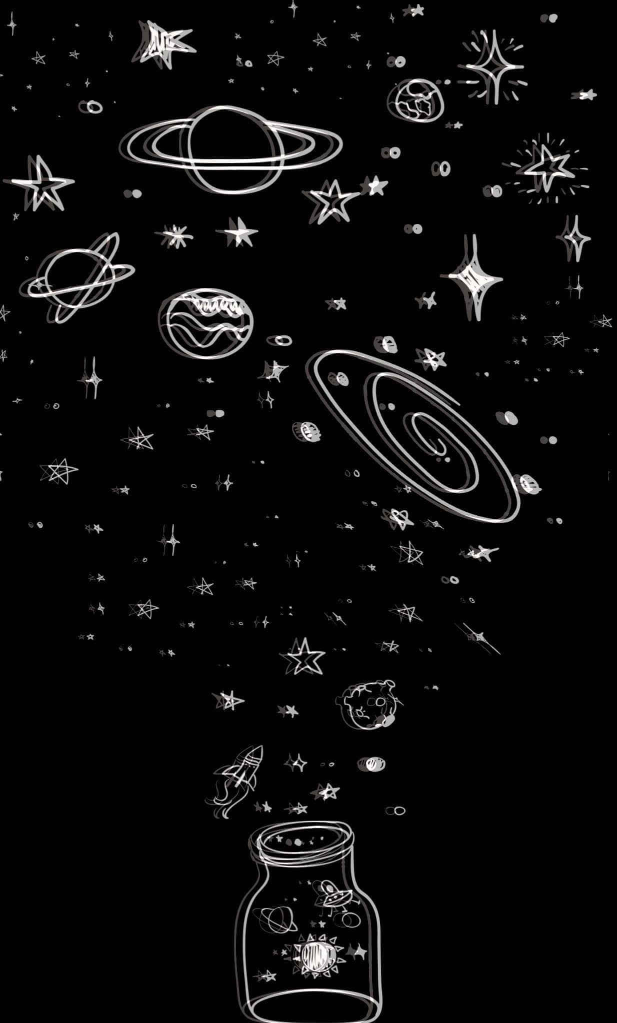 Aesthetic White And Black Iphone Planets Wallpaper