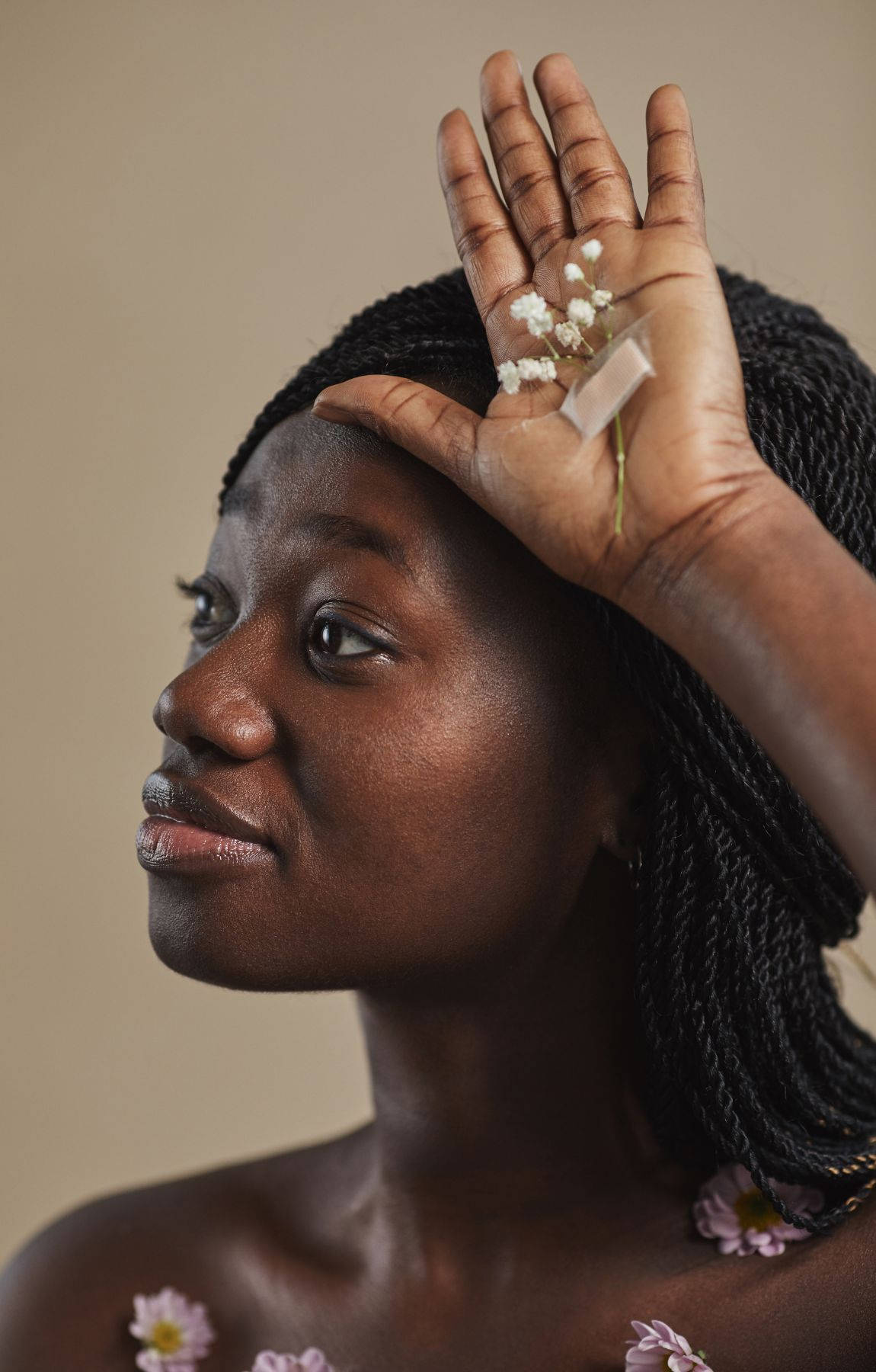 African Woman Hands Up Flowers Wallpaper