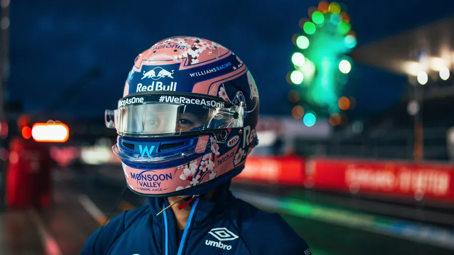 Alexander Albon In Floral Helmet Wallpaper