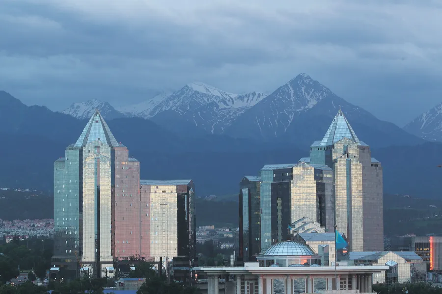 Almaty Buildings Against Mountains Wallpaper
