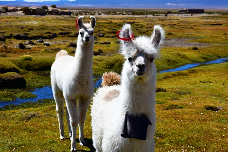 Alpacas On Green Plain Wallpaper