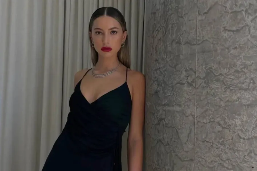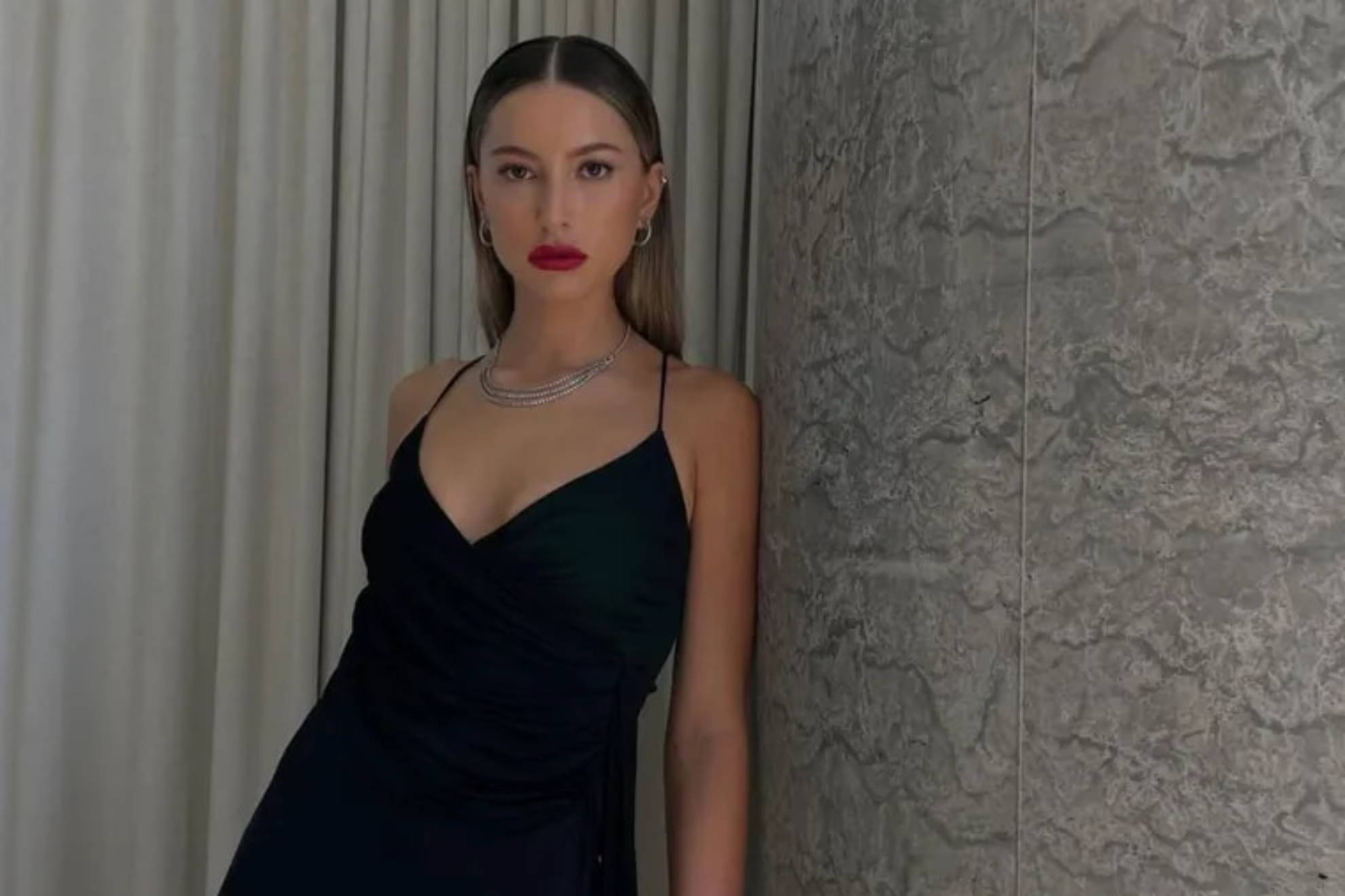 American Model Eve Jobs On Red Lipstick Wallpaper