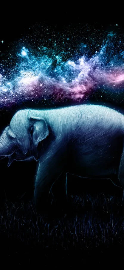 An Elephant Standing In The Grass With Stars In The Background Wallpaper
