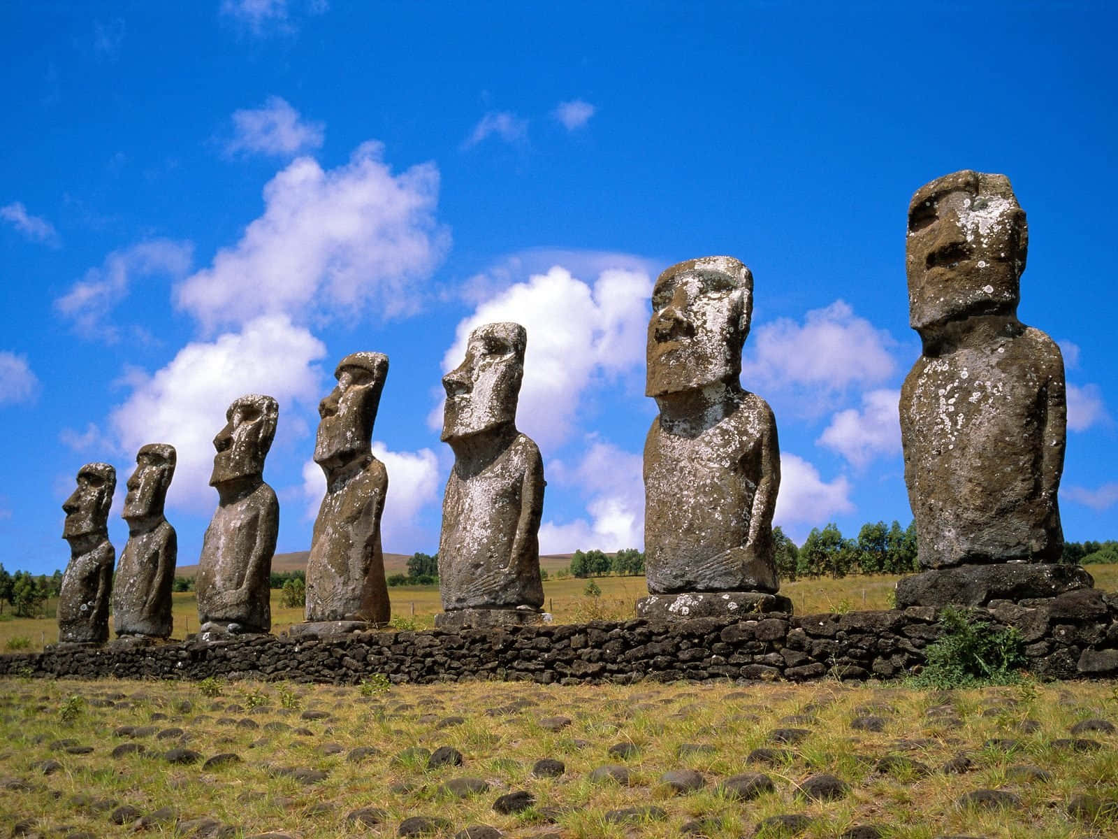 Ancient Moai Statues At Ahu Akivi, Chile Wallpaper