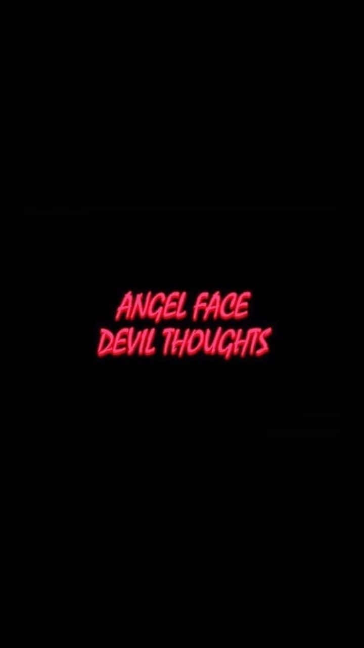 Angel Face Devil Thoughts Black And Red Aesthetic Typography Wallpaper