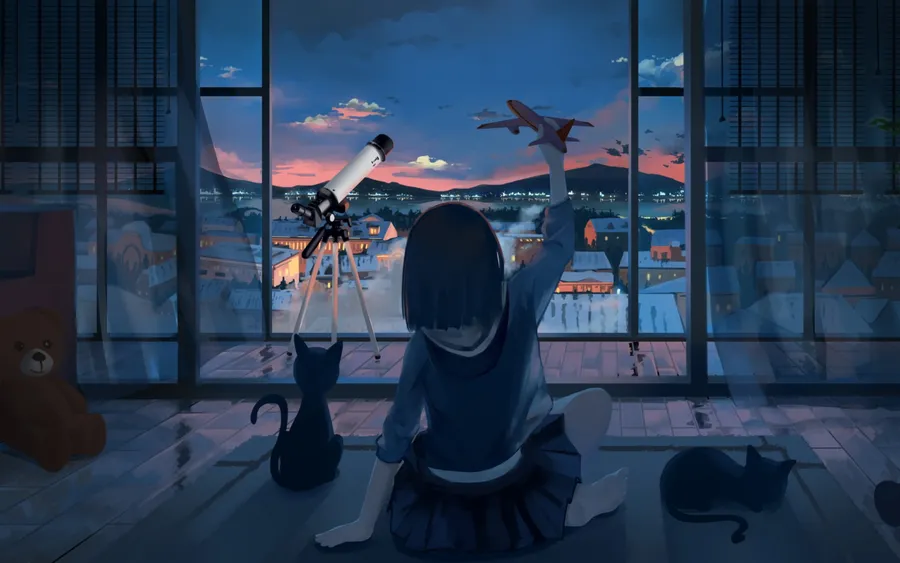 Animated Girl Plays Toy Plane Wallpaper