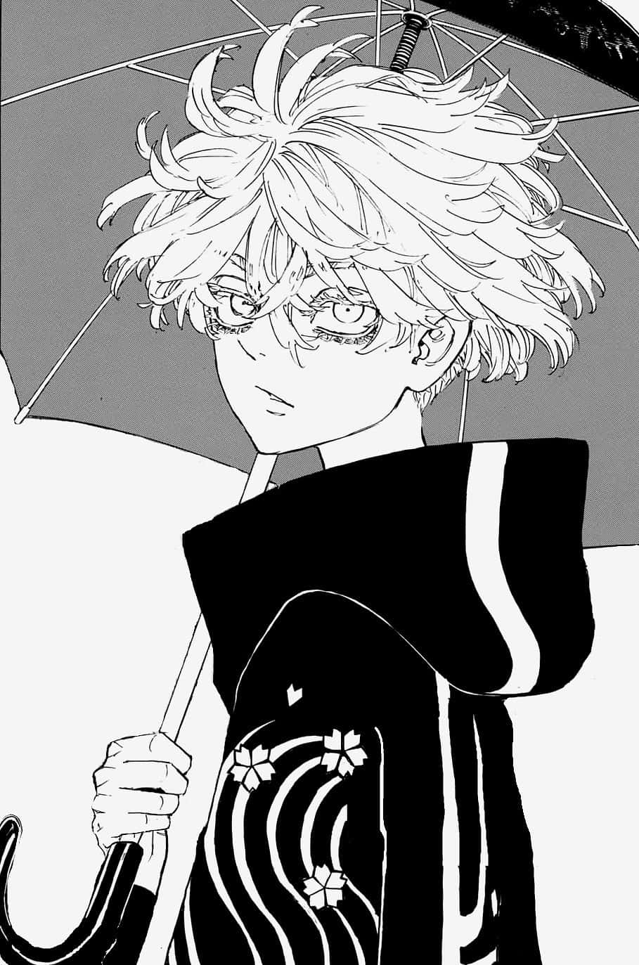 Anime Character With Umbrella Monochrome Wallpaper