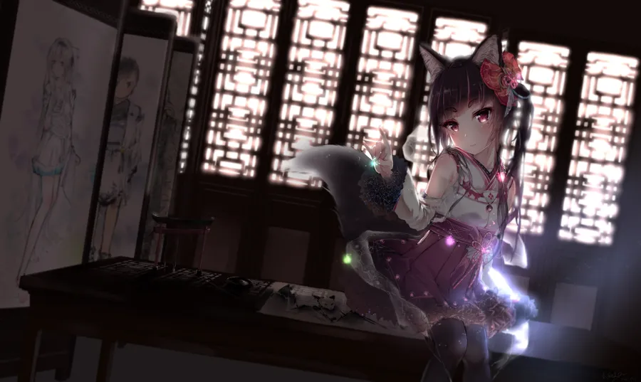 Anime Fox Girl Showing Thigh Wallpaper