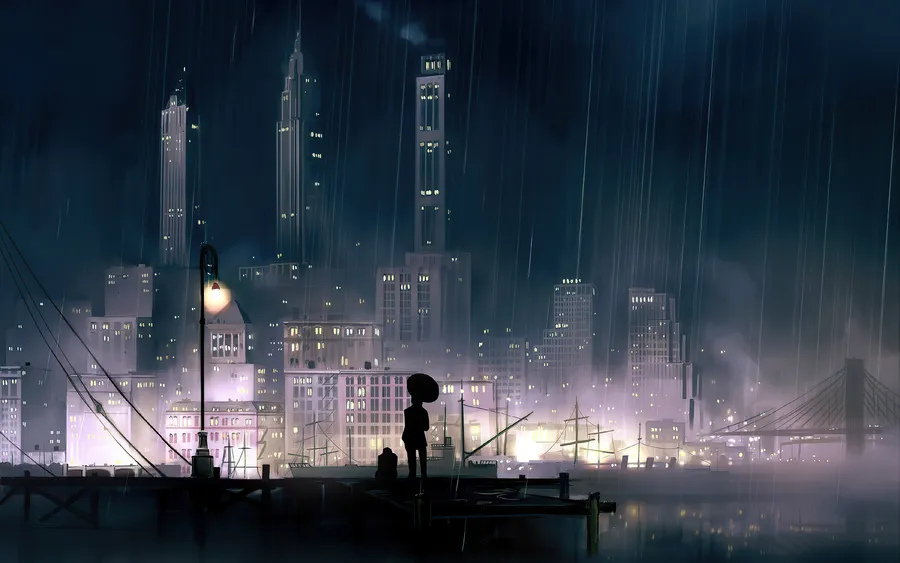 Anime Rainy City At Night Wallpaper
