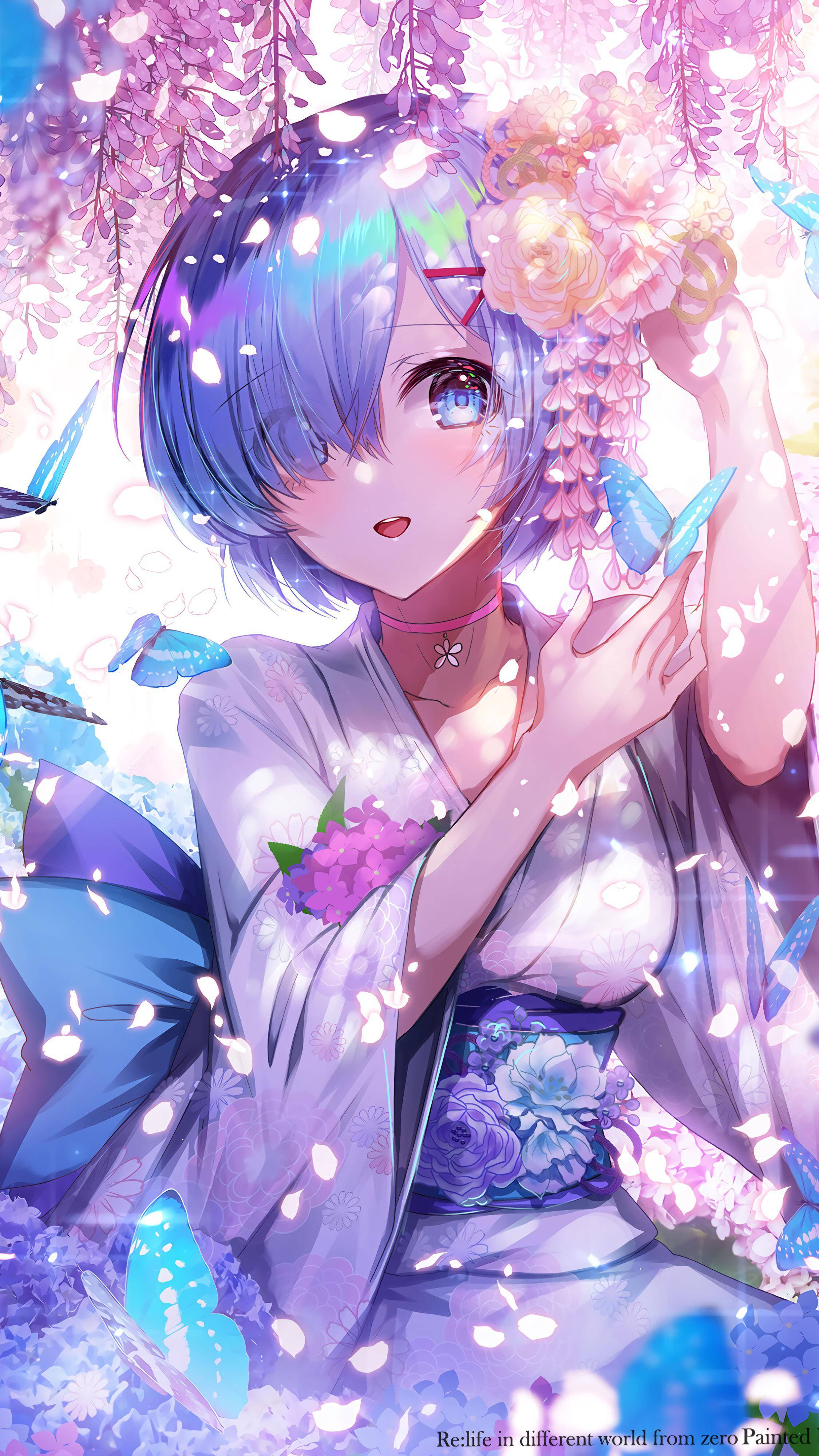 Anime Waifu Rem Re Zero Blue Aesthetic Kimono Wallpaper