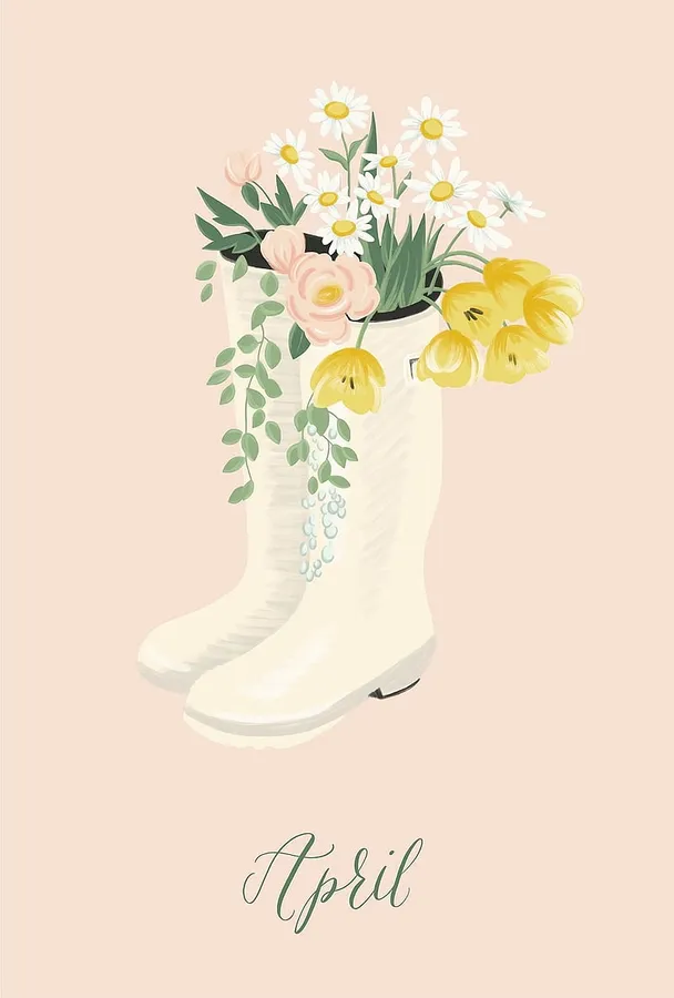 April Floral Boots Illustration Wallpaper