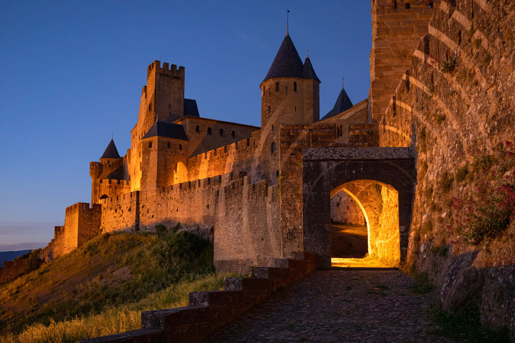 Aude Gate In Carcassonne During Nighttime Wallpaper