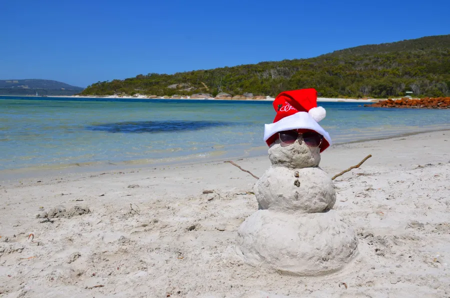 Australian Christmas Snowman With Hat Wallpaper