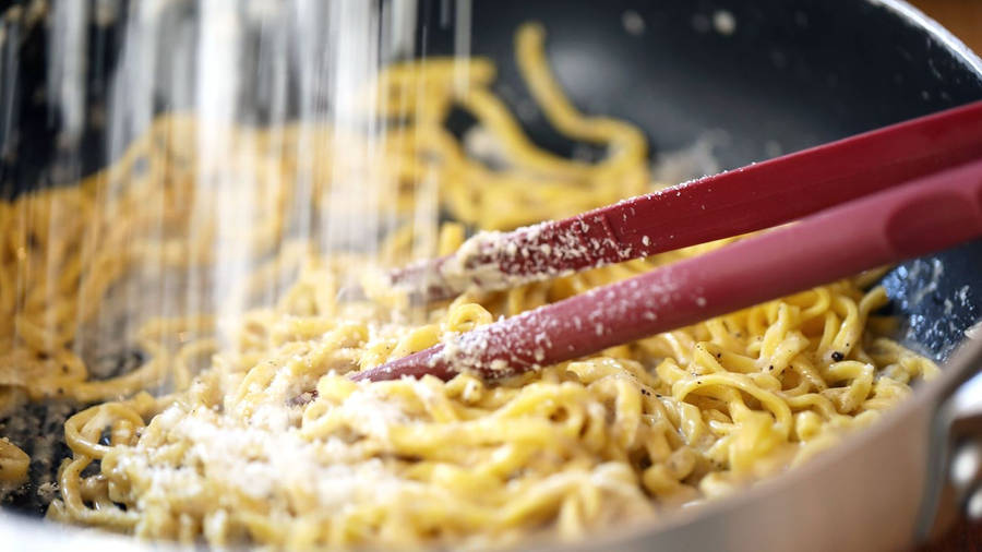 “authentic Cacio E Pepe Pasta Sprinkled With Fresh Parmesan” Wallpaper