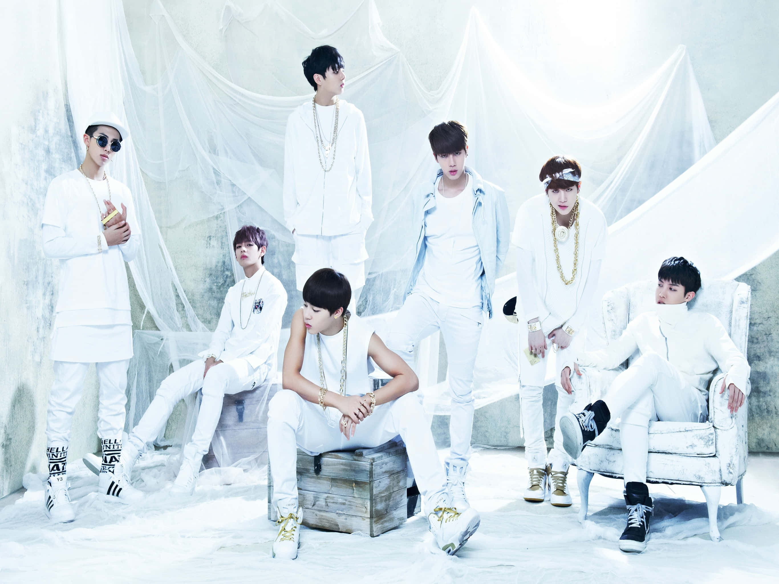 B T S_ Group_in_ White_ Attire Wallpaper