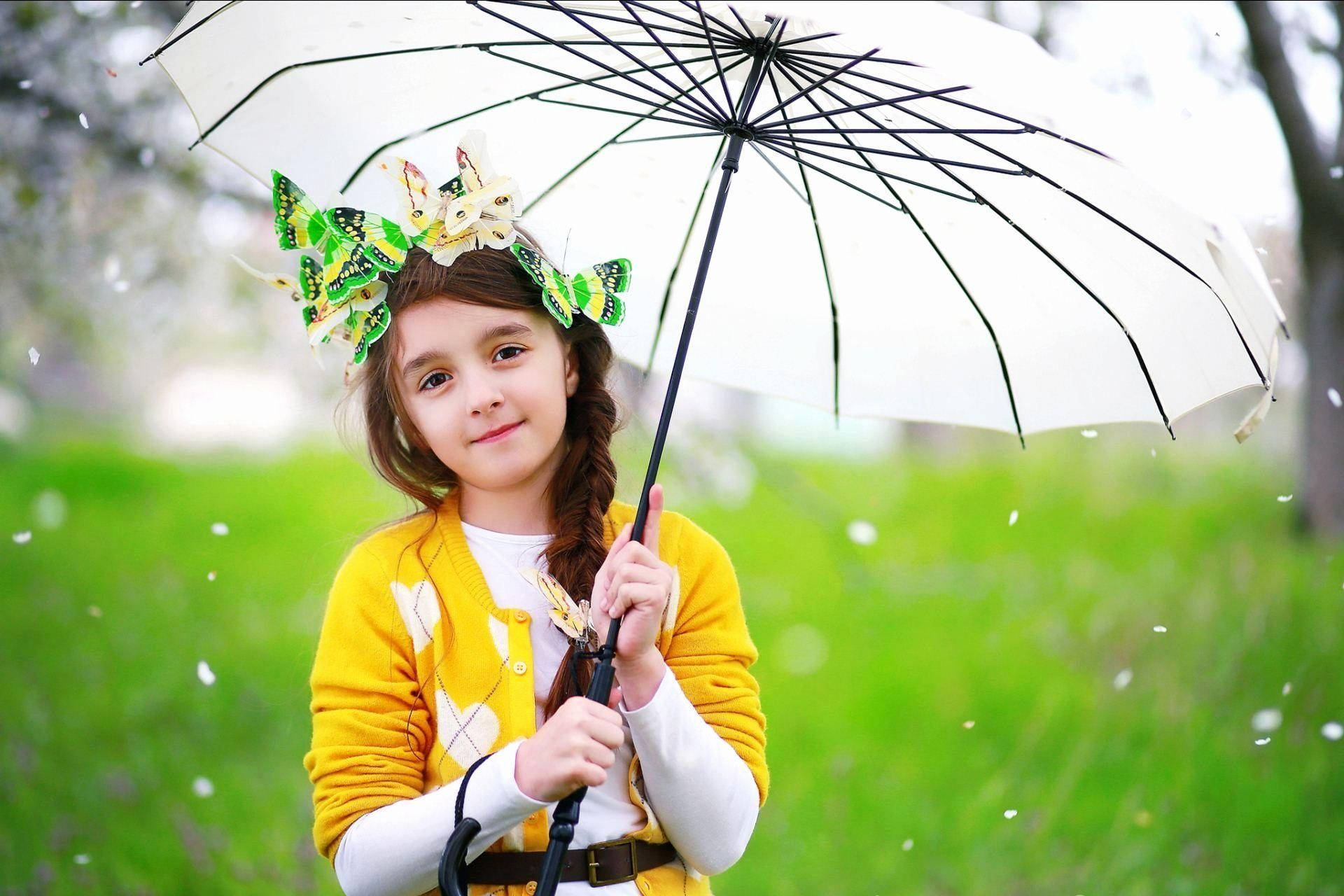 Baby Girl White Umbrella Wallpaper