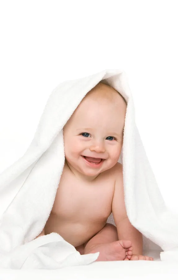 Baby Photography Smiling Under White Cloth Wallpaper
