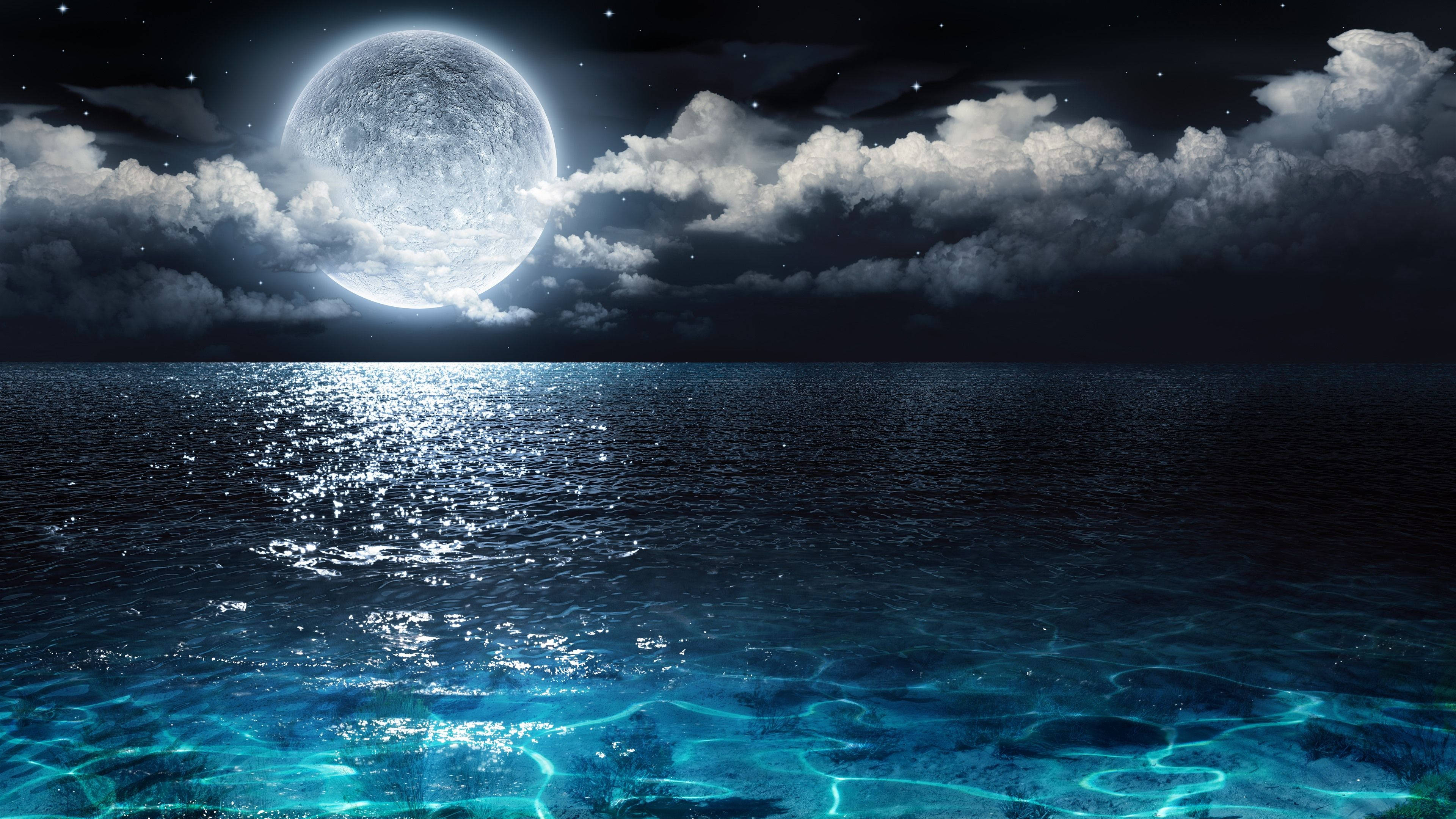 Beautiful Moon Over The Blue Ocean Wallpaper