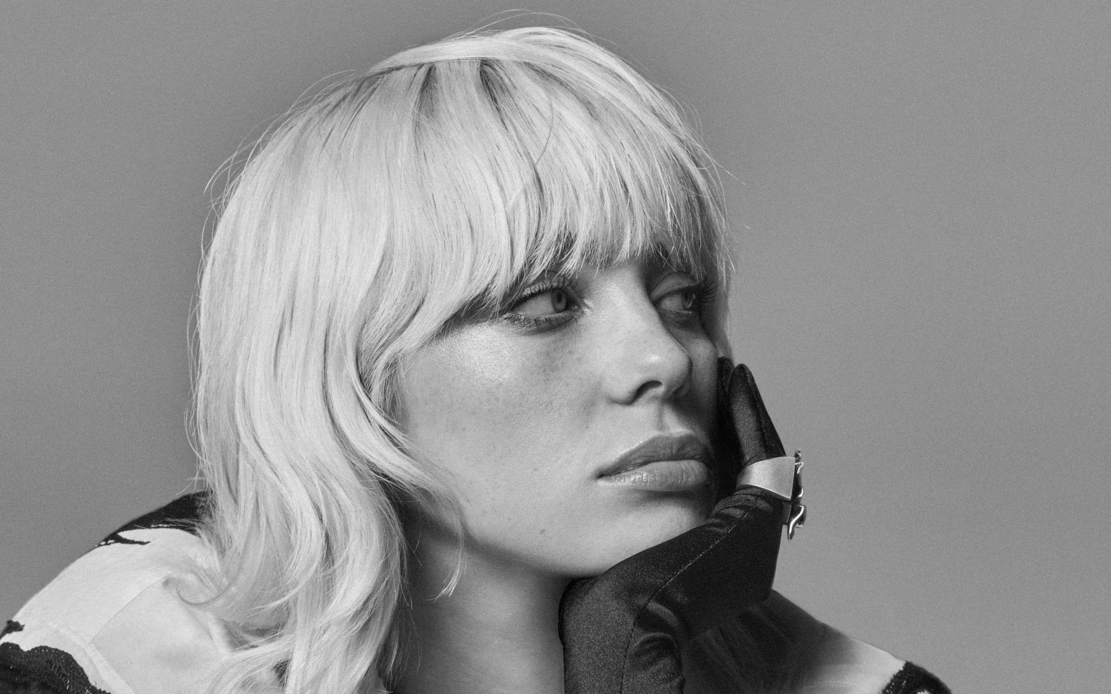 Billie Eilish Stands With Her Laptop, Making Music. Wallpaper