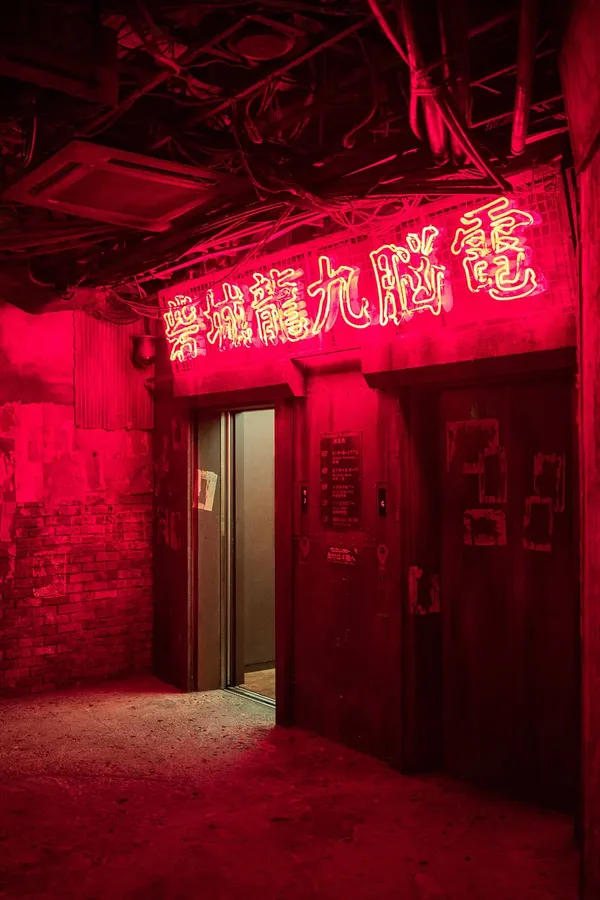Black And Red Aesthetic Mandarin Neon Lights Wallpaper
