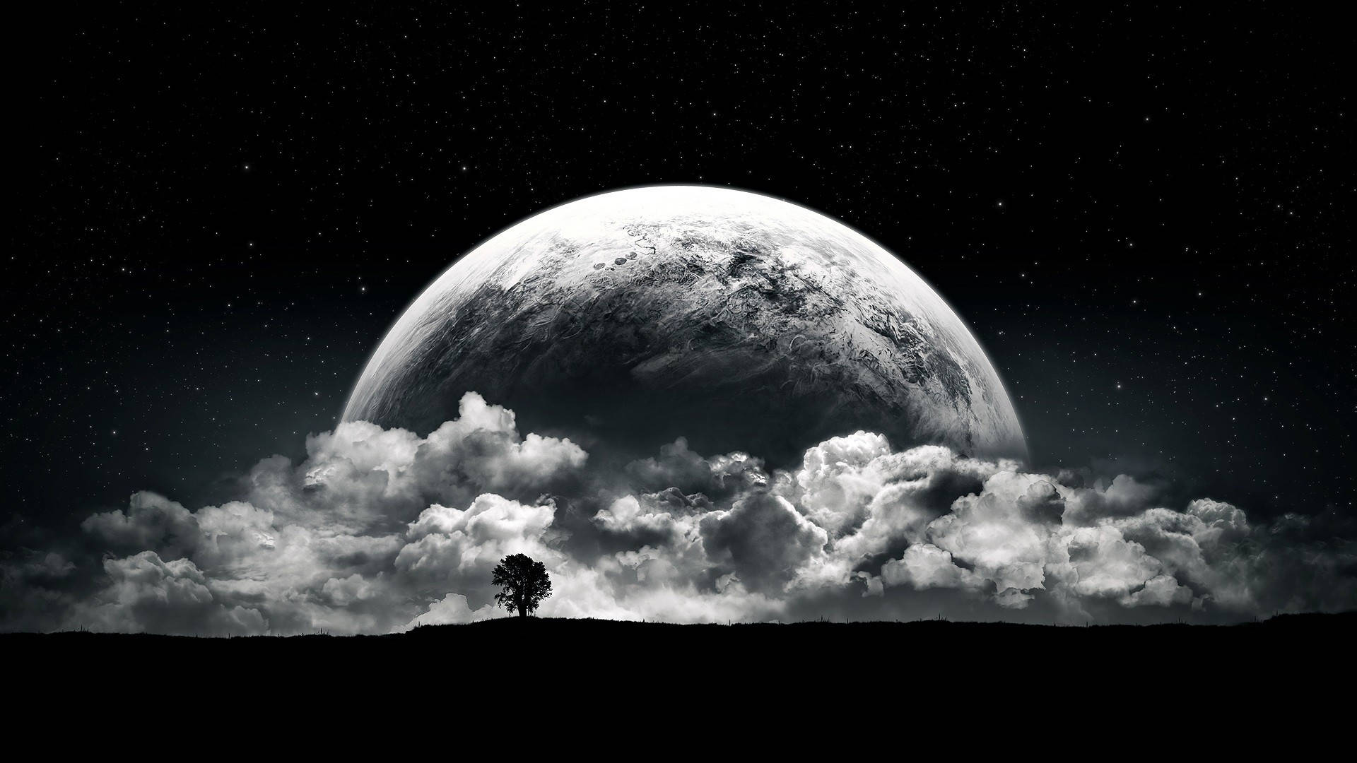 Black And White Astronaut Huge Planet View Wallpaper