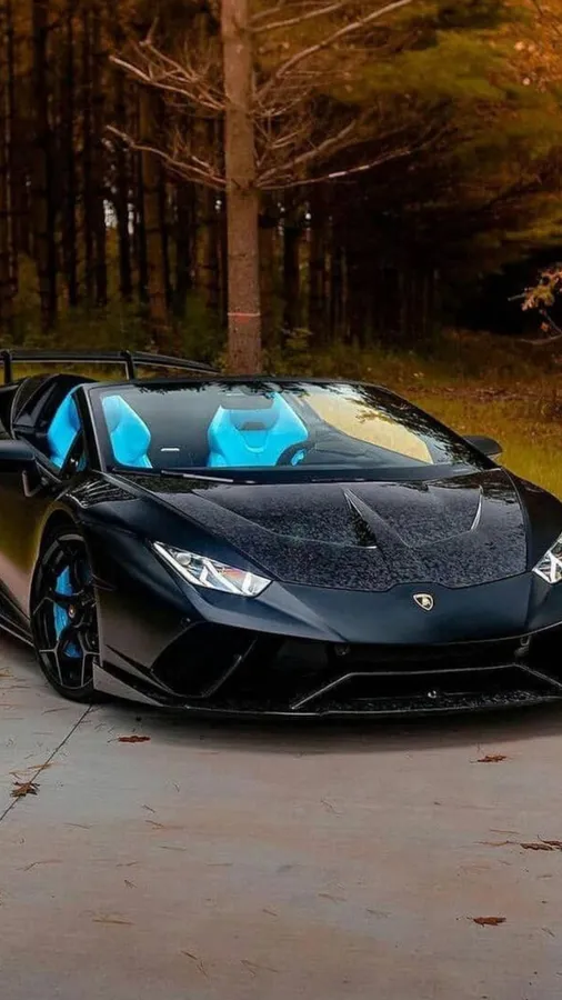 Black Blue Neon Lamborghini Forest Road.jpg Wallpaper