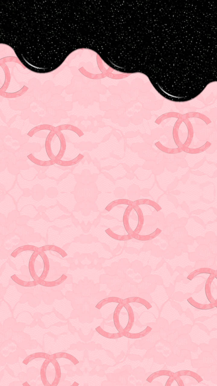 Black Paint Dripping On Pink Chanel Logo Wallpaper