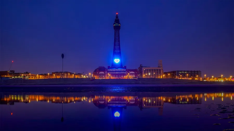 Blackpool Tower At Night With Blue Light Wallpaper