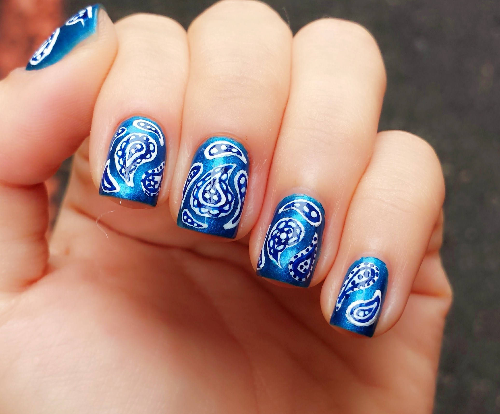Blue Bandana Nail Polish Design Wallpaper